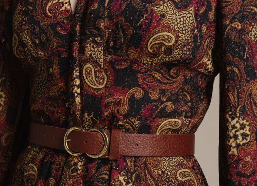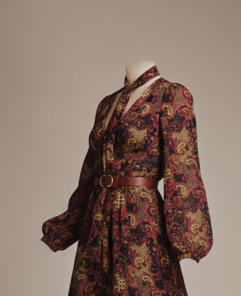 • Transitional Layering: On cooler days, it layers beautifully under a tailored camel coat or a faux fur gilet, allowing the rich print and flowing skirt to peek out.