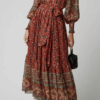 Drift into a world of artistic elegance with the ‘Boho Reverie’ Maxi Dress. This captivating piece is adorned with a sophisticated, rich Paisley print in a harmonious blend of Deep Burgundy, Navy, Ochre, and Cream. The intricate pattern tells a story, making each dress a wearable work of art.