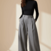 Designed with a flattering high-waisted silhouette, they feature a clean, uncluttered front, allowing the beautiful color and the elegant wide-leg cut to take center stage. The wide-leg design cascades effortlessly to the floor, creating an elongated and fluid line that moves with grace. A smooth, structured waistband with a concealed closure ensures a seamless and polished fit, while discreet side pockets offer functionality without disrupting the sleek aesthetic.
