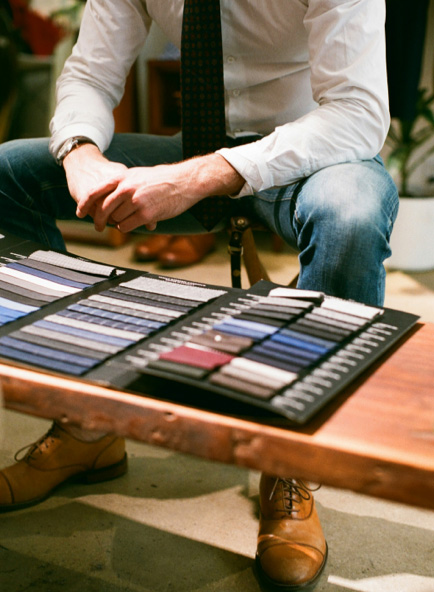 Visitez nos showrooms et rencontrez nos stylistes pour en savoir plus sur notre collection de tissus et choisissez le tissu adapté à vos besoins. Entrez dans un monde où la sophistication rencontre l’élégance personnalisée, et laissez-nous adapter un look exceptionnel qui vous assure de vous démarquer en tant qu’hommes les mieux habillés dans n’importe quelle pièce.